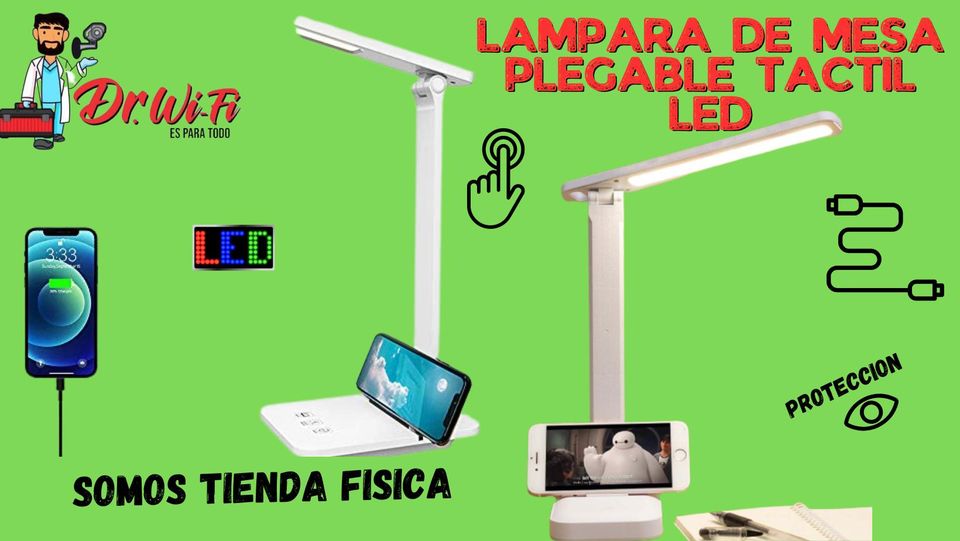 La lámpara de escritorio LED es ligera, se pliega y es fácil de almacenar. Viene con un cable mini USB para dar alimentacion. El elegante interruptor táctil le permite cambiar los niveles de brillo junto con el color de iluminación.Los colores de iluminación son luz de día, blanco suave o ambos colores combinados. La temperatura de color es entre 3000 – 6500 K y 6000 mAh. Puedes conectarla a tu computador, power bank o con un adaptador de corriente